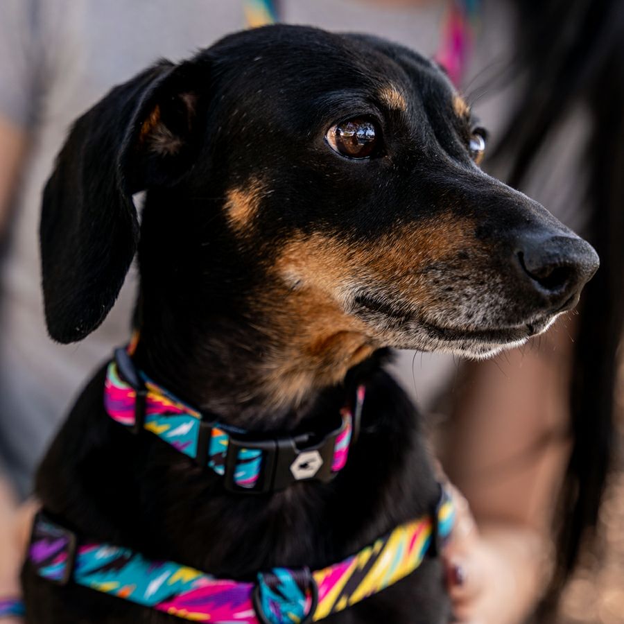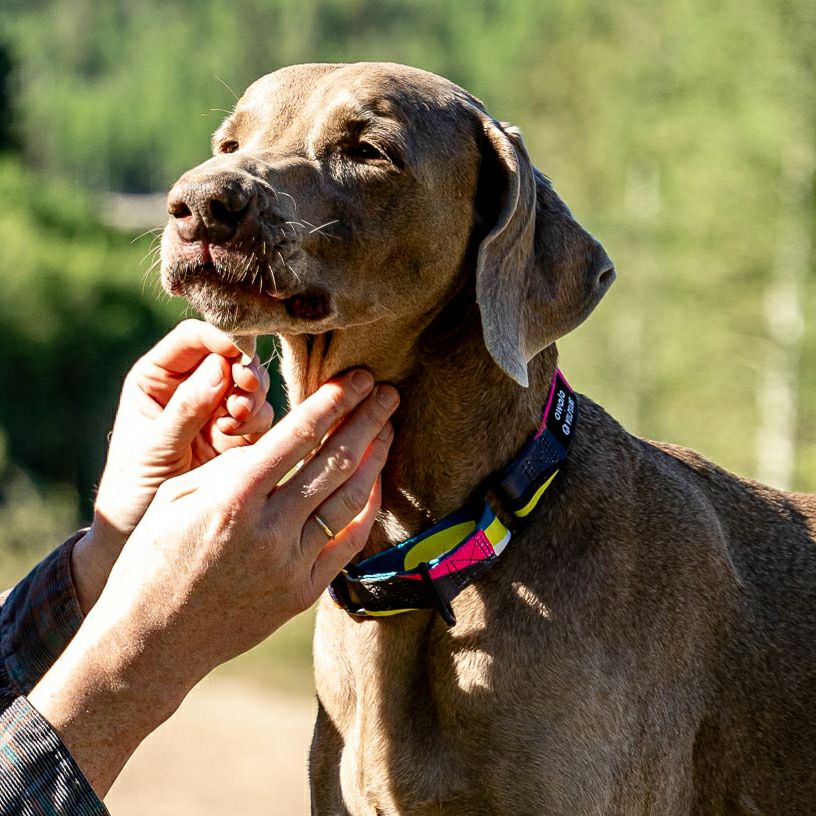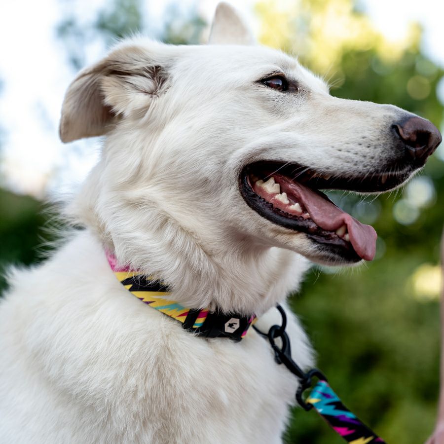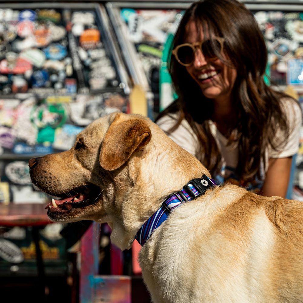 シートベルトにも使われる強さとしなやかさが特徴のウェビング素材を使用した首輪。豊富なデザインと、愛犬の付け心地の良さも人気の秘密。