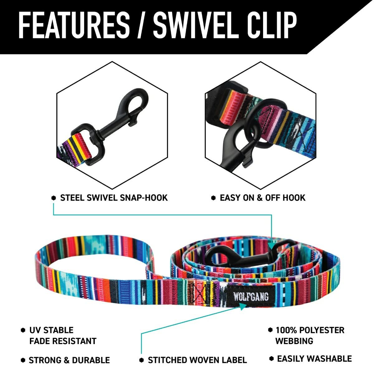 WOLFGANG のリードは、シートベルトにも使われるポリエステルウェビングを使用。