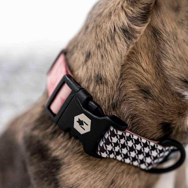シートベルトにも使われる強さとしなやかさが特徴のウェビング素材を使用した首輪。豊富なデザインと、愛犬の付け心地の良さも人気の秘密。